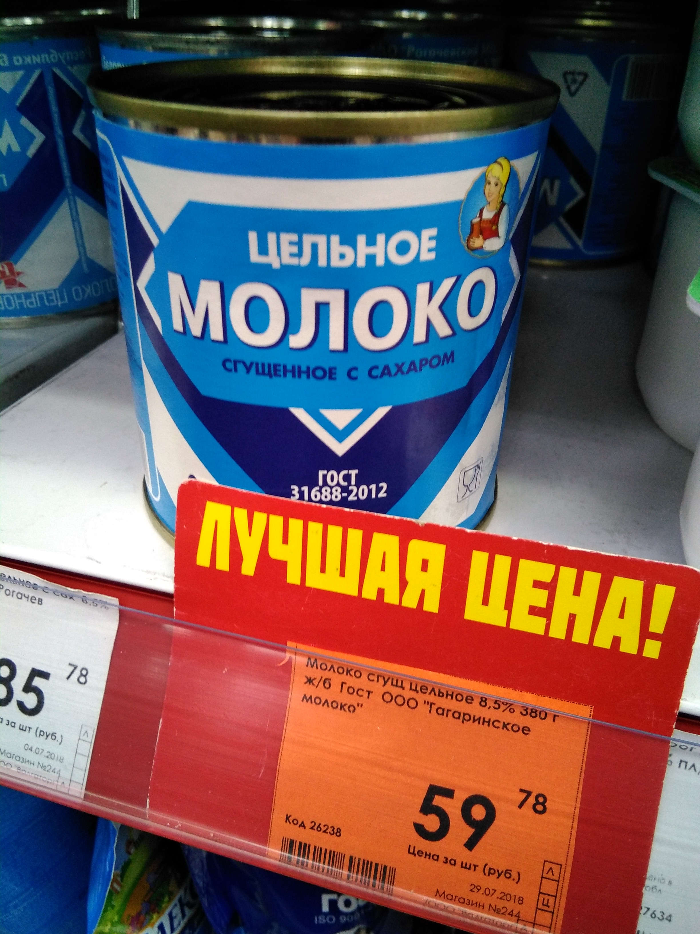 Возникает вопрос: как сгущенка без декларации соответствия, выпущенная в декабре 2017 года и подлежащая отзыву, в июне 2018 года оказалась на прилавках саратовских магазинов сети «Семейный»? Причем, ООО «Волгаторг» (розничный продавец) довольно выигрышно ее позиционирует на полках, выставляя ценник «Низкая цена».